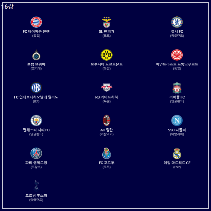 챔피언스리그 16강 일정부터 살펴보겠습니다.
